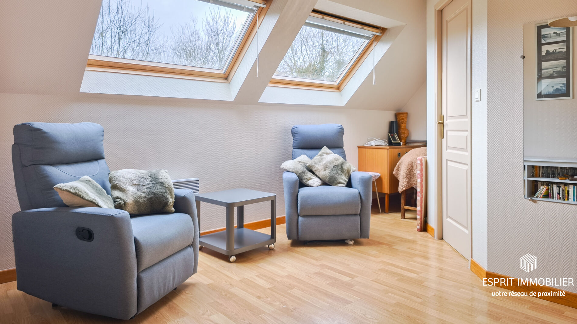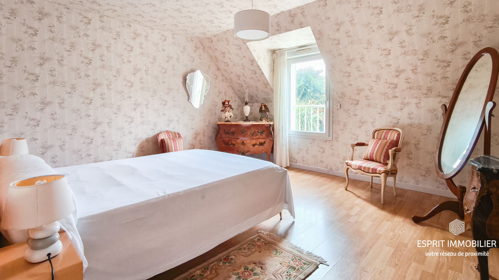 A l'étage, une belle mezzanine, idéale pour un espace bureau, mène à une suite parentale comprenant une chambre, un dressing et une salle de bains avec douche. Vous y trouverez également une chambre avec placards, une salle d'eau et un WC indépendant.